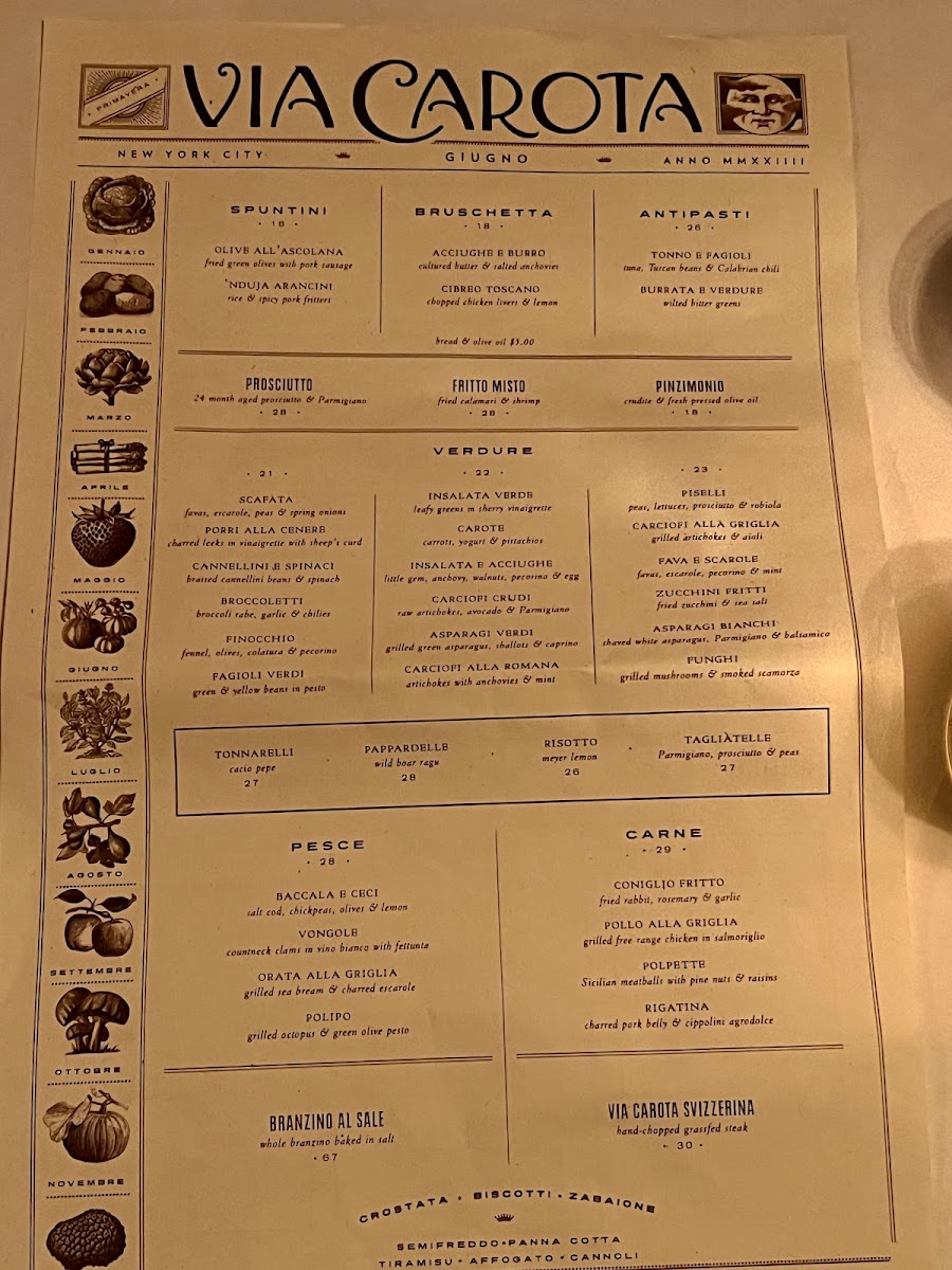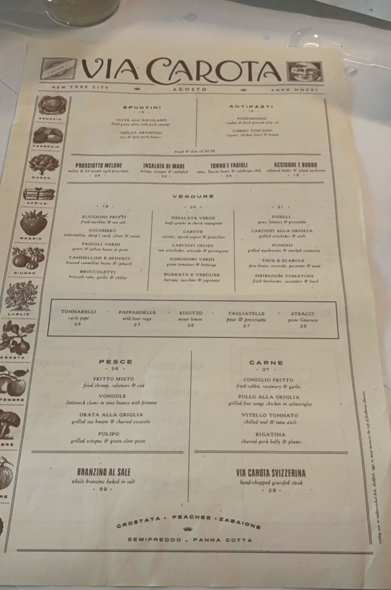 Complementing the food is an impressive selection of wines and cocktails. Noteworthy options include the Via Carota Negroni Classico and the sophisticated Roero Arneis by Vietti, each pairing beautifully with the robust Italian dishes.